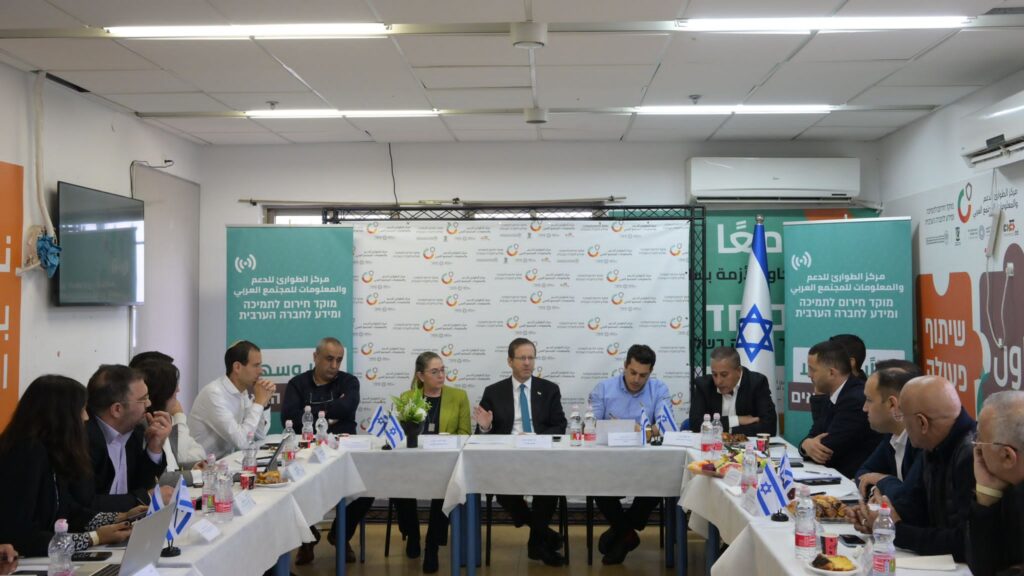 رئيس الدولة يزور مركز الطوارئ للمجتمع العربي في كفرقاسم ويلتقي برؤساء السلطات المحلية