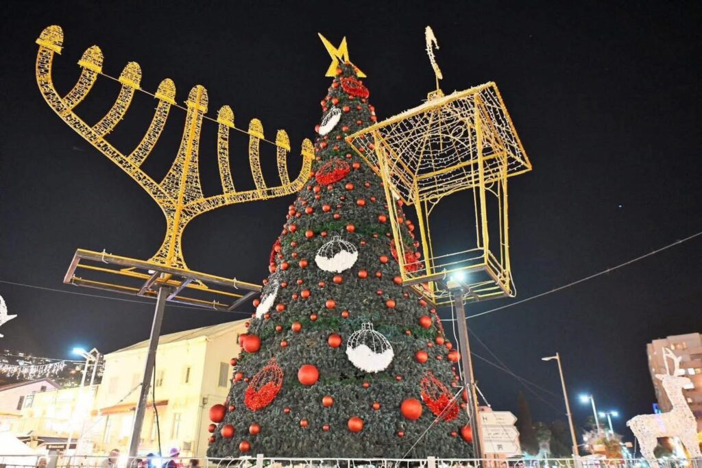شجرة الميلاد والشمعدان يضيئان سماء حيفا: انطلاق احتفالات الشتاء